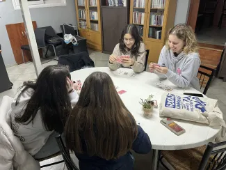 In Kryoneri, our work mainly revolves around the FILOXENIA organisation. We support and accompany their youth exchanges, which mostly deal with political and social issues. The nice thing about working here is also our environment, because we interact with young and open-minded individuals. When there are no exchanges taking place, we either work in the once and create videos, edit websites, and translate small articles, or we help with the olive harvest and support the village community. Personally, I really enjoy the harvest! It's so interesting to be able to participate in something like this, especially if you come from a big city. You learn a lot about physical labour, which I'd had very little contact with before.