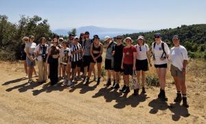 The summer camp in Kryoneri served as a living tribute to this history. Participants embarked on a journey of discovery, engaged with local residents, and uncovered historical sites, such as the former hideout in the mountains. Through practical work, they cleared paths to these significant locations, ensuring that the memory of Jewish persecution and resistance against the Nazi occupation remained alive at the local level. Beyond the physical labor, the camp participants delved into the history of the Holocaust and the politics of remembrance. They explored contemporary forms of engagement against antisemitism and reflected on their own roles in addressing current challenges. The stories and testimonies from Kryoneri provided a powerful example of how solidarity could protect lives, inspiring participants to consider their own actions in the face of adversity. The summer camp also supported the ongoing work of remembrance in Kryoneri and the Corinth region. This included maintaining local topography, such as hiking trails and memory paths, and fostering knowledge exchange about the German occupation in Greece and its aftermath, particularly the history of Jewish persecution and its impact on present-day Jewish life.