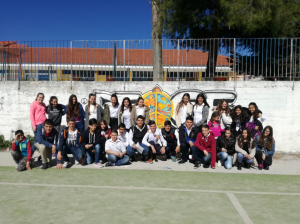 In cooperation with the school director, the school's art teacher and the group of the involved youngsters, a draft was created beforehand. After collectively brainstorming and deciding on a topic, the painting of the wall began; Initially the frame with colours and then with spray, step by step. To make it safe and resistant to the weather conditions, we needed to use different techniques. During that period, all students had the chance to participate and try those techniques. So, the result is their own group art project. In the winter period from November 2016 till March 2017, young students worked on the graffiti picture, with the theme “Peace and Respect”. Another graffiti, featuring a colourful peace symbol in the middle was brought to existence in the school's sports ground wall. All students participated and lent a hand. We are thankful to school students and teachers for their cooperation.