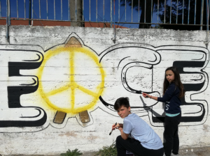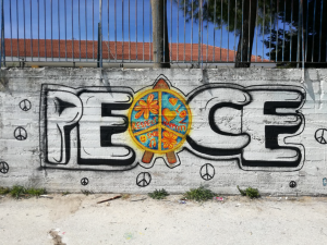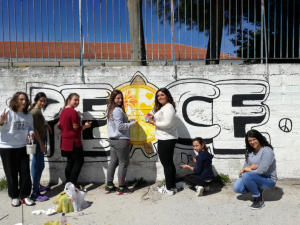 A class of the Agricultural Lyceum of Yssingeaux - France visited Kryoneri during the last 2 weeks of March 2017 and liked this Graffiti so much, that some students, in cooperation with the school pupils, made another graffiti, connected to this peace project.