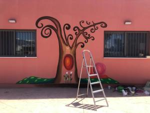 Sometimes, we were also helping the village or the community to build or decorate something, for example when the Kindergarten in Corinth needed some help to paint their wall!"
