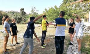 From first day we started with on-arrival training, with activities to get to know each other and we didn’t start until a week later, leaving us some time to adapt both with the house and with the companions and with the Kryoneri people, in which the people are very kind. We found the activities very fun and original, we also loved the town, with lots of nature, cozy, like the house, beautiful views. The first days of work were intense, as is typical in Spain, after working and eating we took naps of two or even three hours some days. But always satisfied and proud of the work we had done, with music, singing and always happy and with attitude.